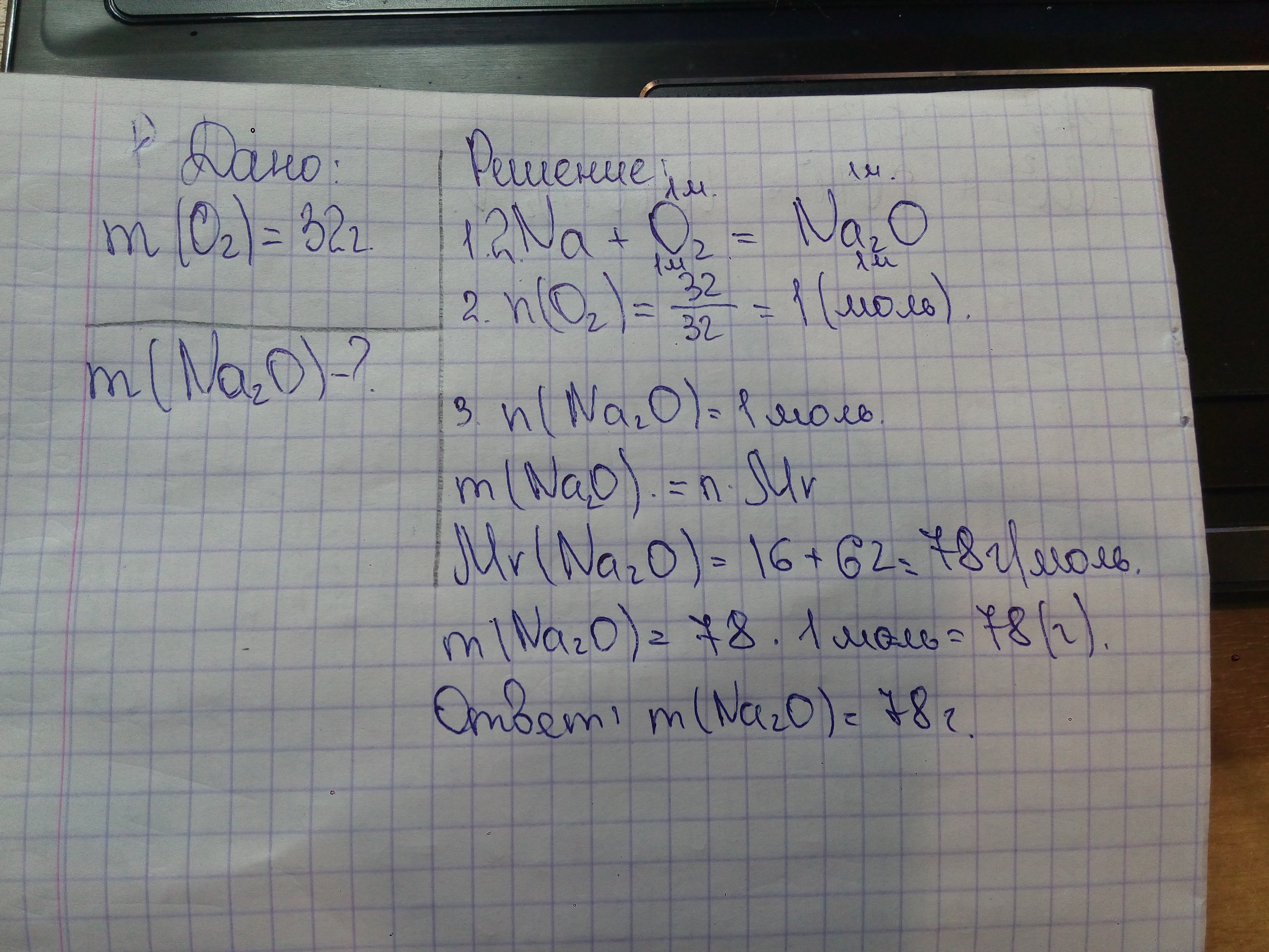 рассчитать массу оксида натрия, который образуеться при взаимодействии 32 грамм кислорода с натрием