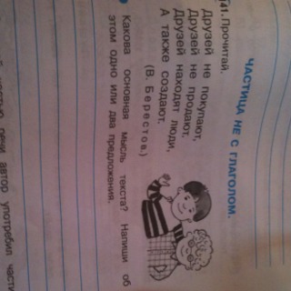 1.мысль в том что друзей не надо предавать.настоящие друзья не покупаются.2.я видела по телевизору как оленя вытаскивали с большого капкана.спасатели спустились вниз в яму, привязали его верёвками и сверху начали тянуть.этот олень был очень голоден.он чуть не умер от голода .но его вовремя вытащили.и его отвезли в зоопарк