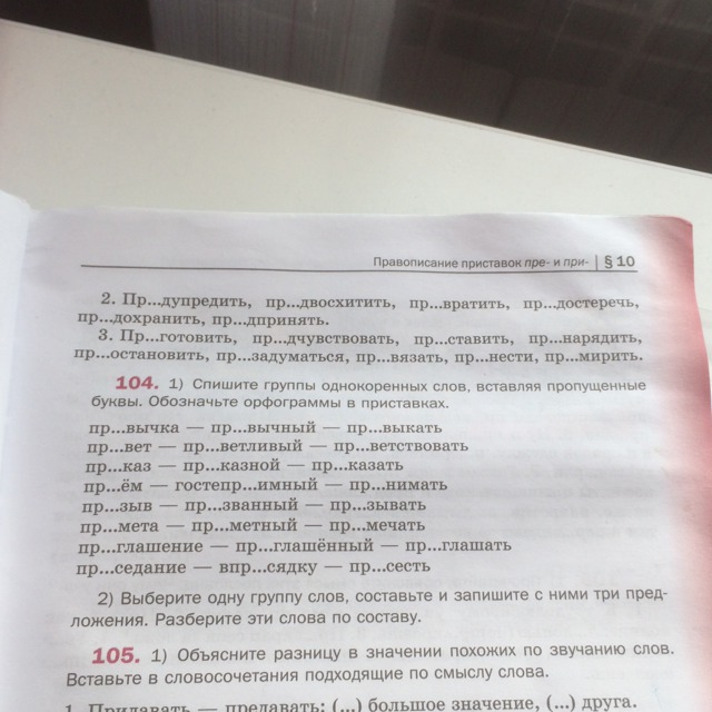 Помогите пожалуйста 104! Выпишите слова с приставками и без них пожалуйста срочнооо!!!!!!!