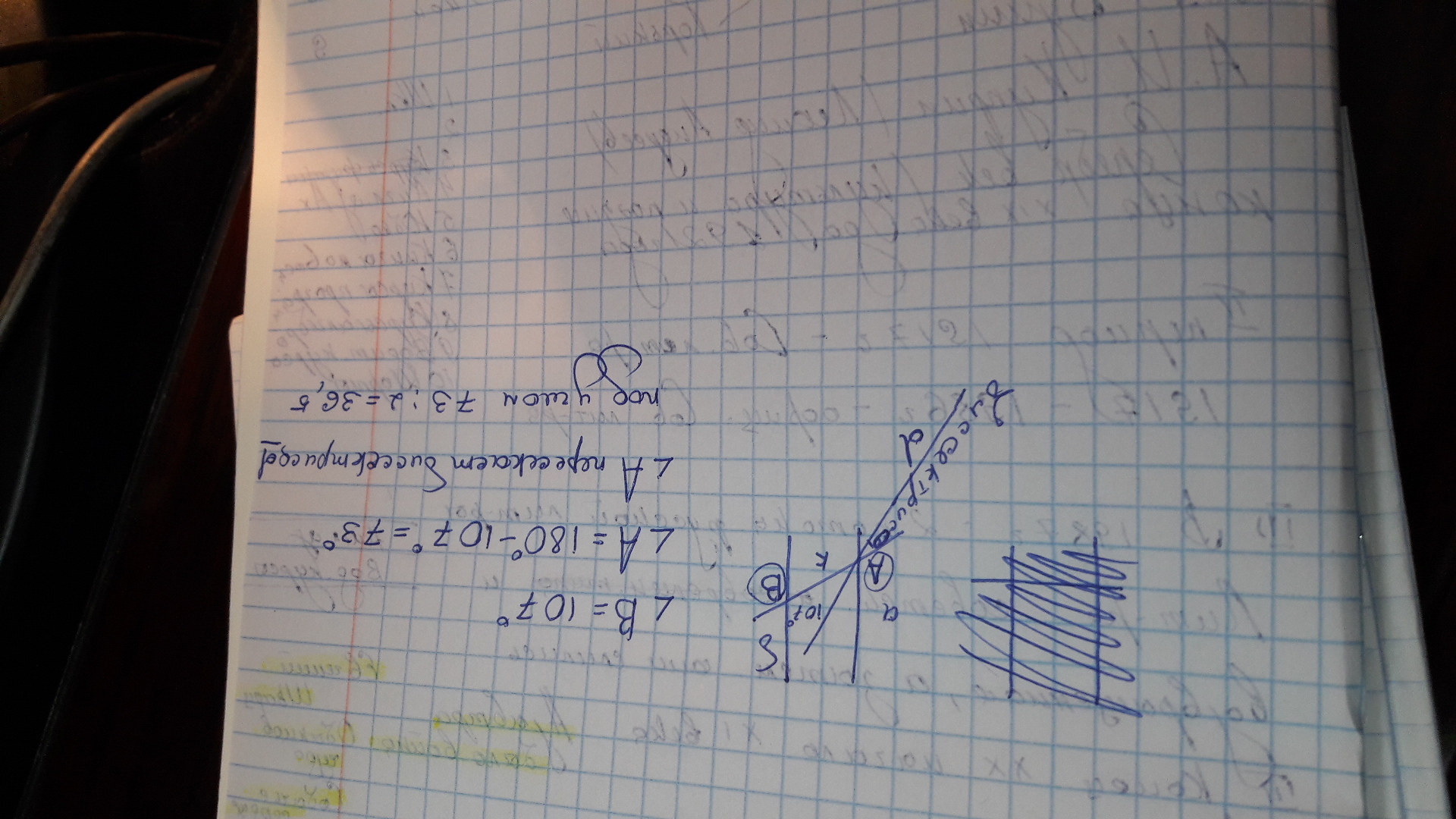 Параллельные прямые а и б пересекаются с прямой к. Один из внутренних углов равен 107 градусов. Под каким углом пересекает биссектриса данного угла вторую прямую