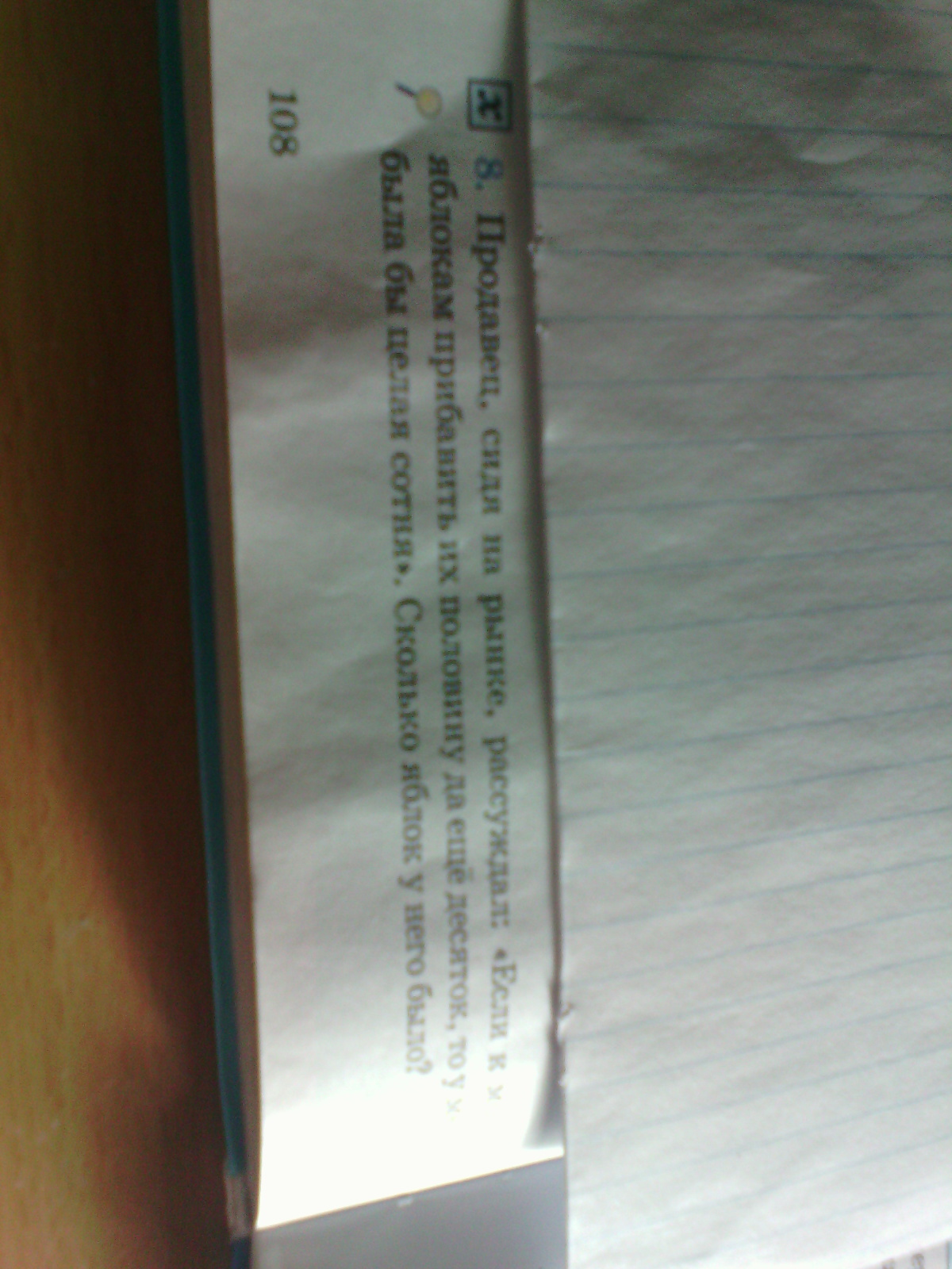 Потому что в условии говорится если прибавить половину яблок и ещё десяток что бы получить 100 яблок.