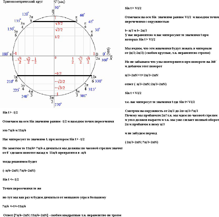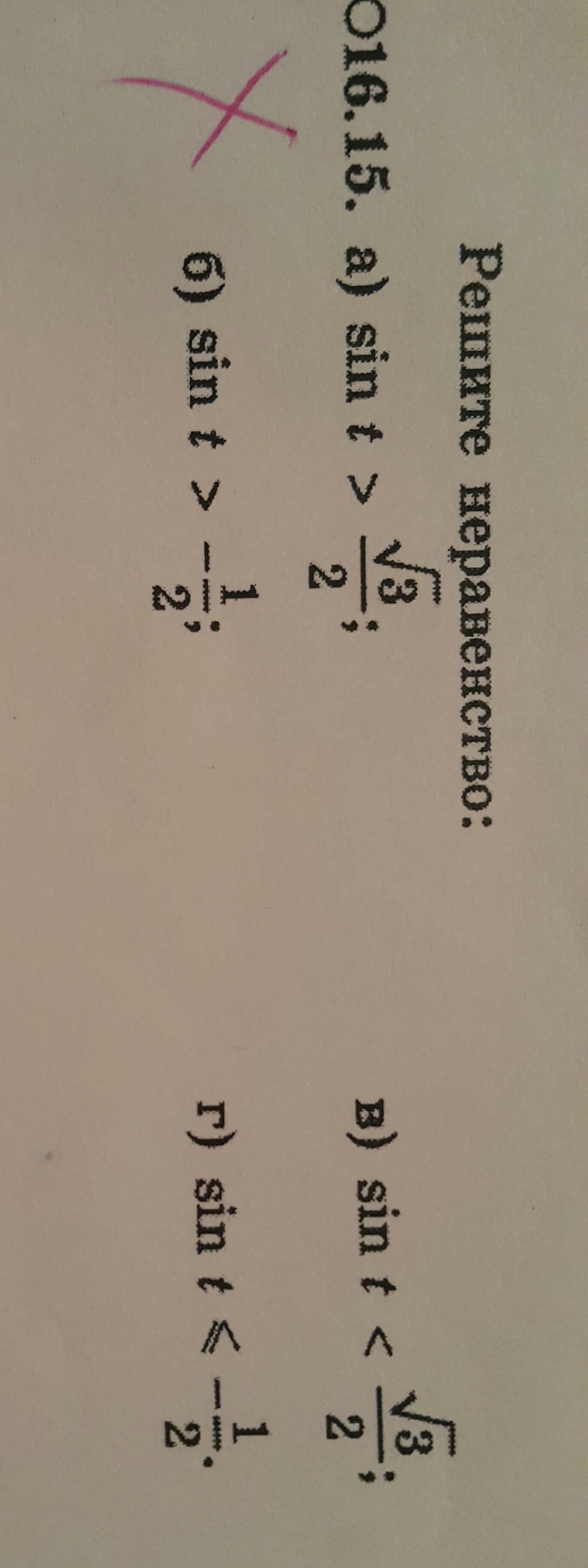 100 баллов. Тригонометрия. Неравенства. Помогите с номером 16.15 Решите с помощью числовой окружности без использования формул! Все только по окружности!