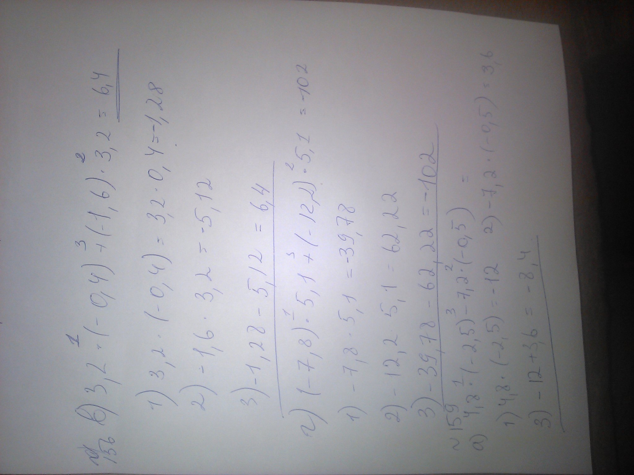 №156 в)3,2*(-0,4)+(-1,6)*3,2; г)(-7,8) * 5,1+(-12,2)*5,1;