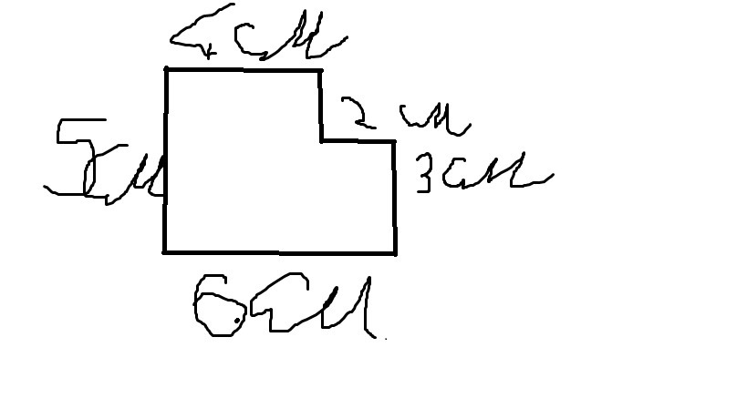внутри прямоугольника со сторонами 5 см и 6 см вырезали квадрат со стороной 2 см найди площадь получившийся фигуры начерти данную фигуру