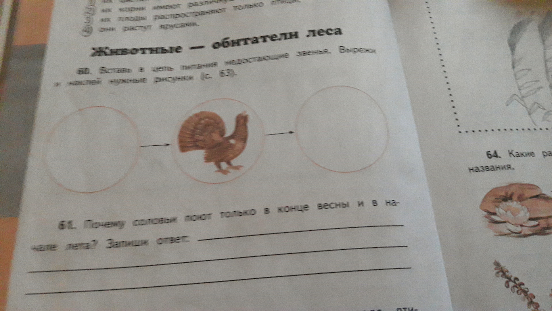 вставь в цепь питания недостающие звенья Вырежи и наклей нужные рисунки страница 63 номер 60 и 61