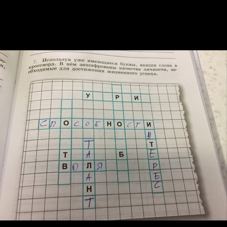 1-усердие, 2-трудолюбие, 3-упорство, 4-способности, 5-интерес, 6- желание, 7- воля