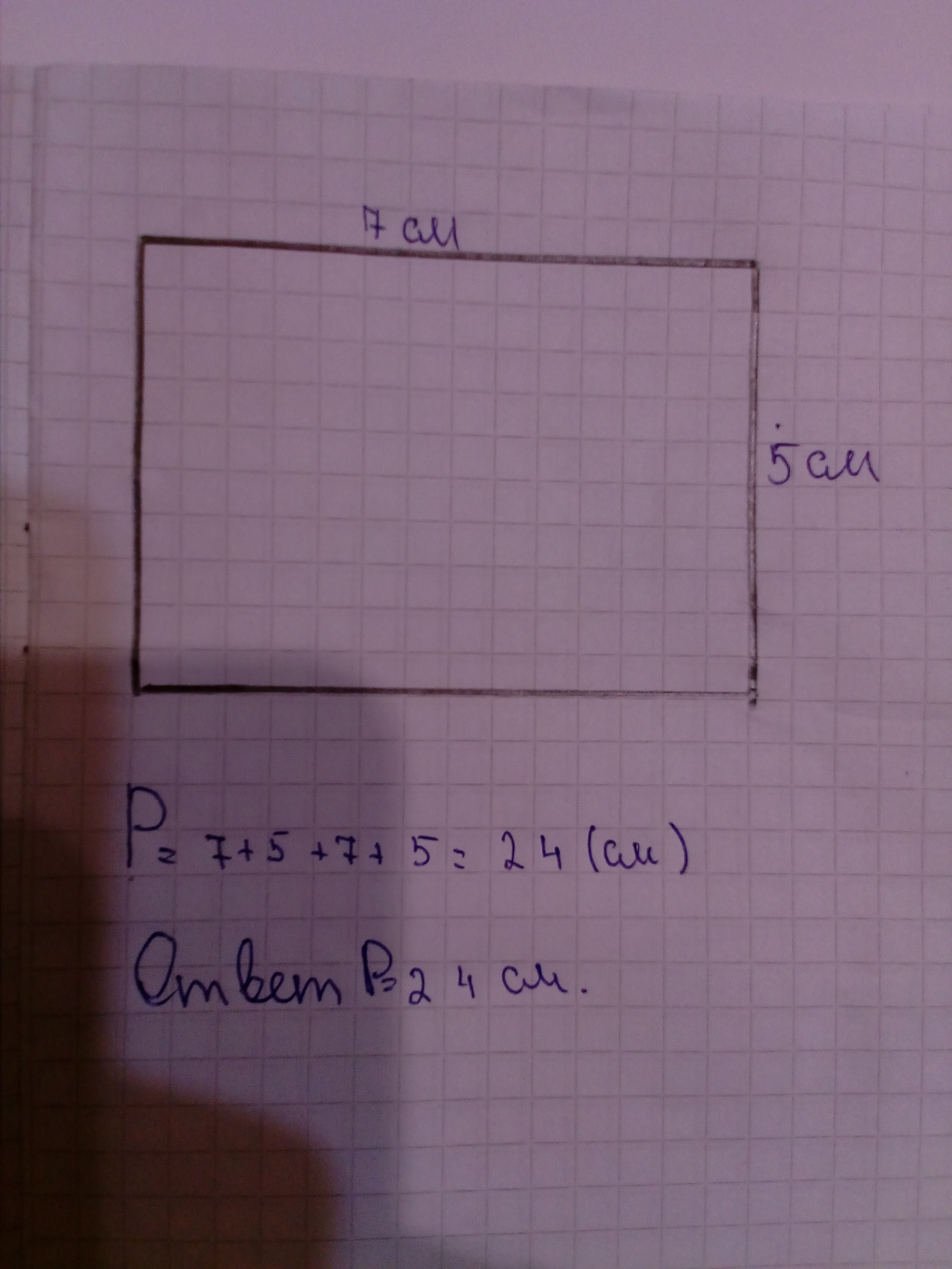 Построй прямоугольник длинной 7 см и шириной 5 см. Найди его периметр.