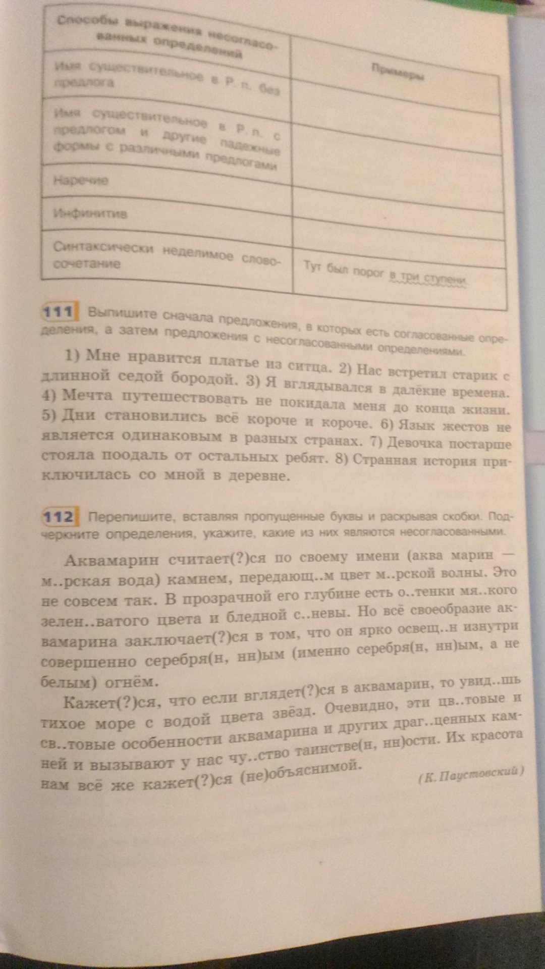Несогласованные определения: платье КАКОЕ? ИЗ СИТЦА, старик КАКОЙ? С БОРОДОЙ, мечта КАКАЯ? ПУТЕШЕСТВОВАТЬ, дни КАКИЕ? КОРОЧЕ и КОРОЧЕ, язык КАКОЙ? ЖЕСТОВ