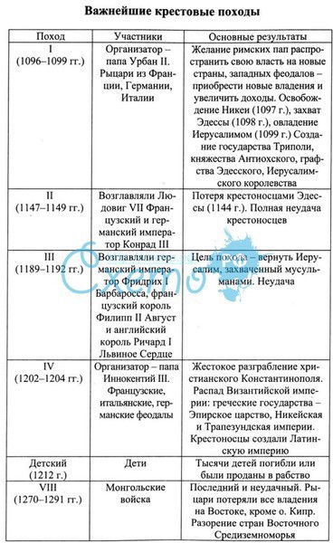 Вот держи,вот твоя таблица Крестовых походов.