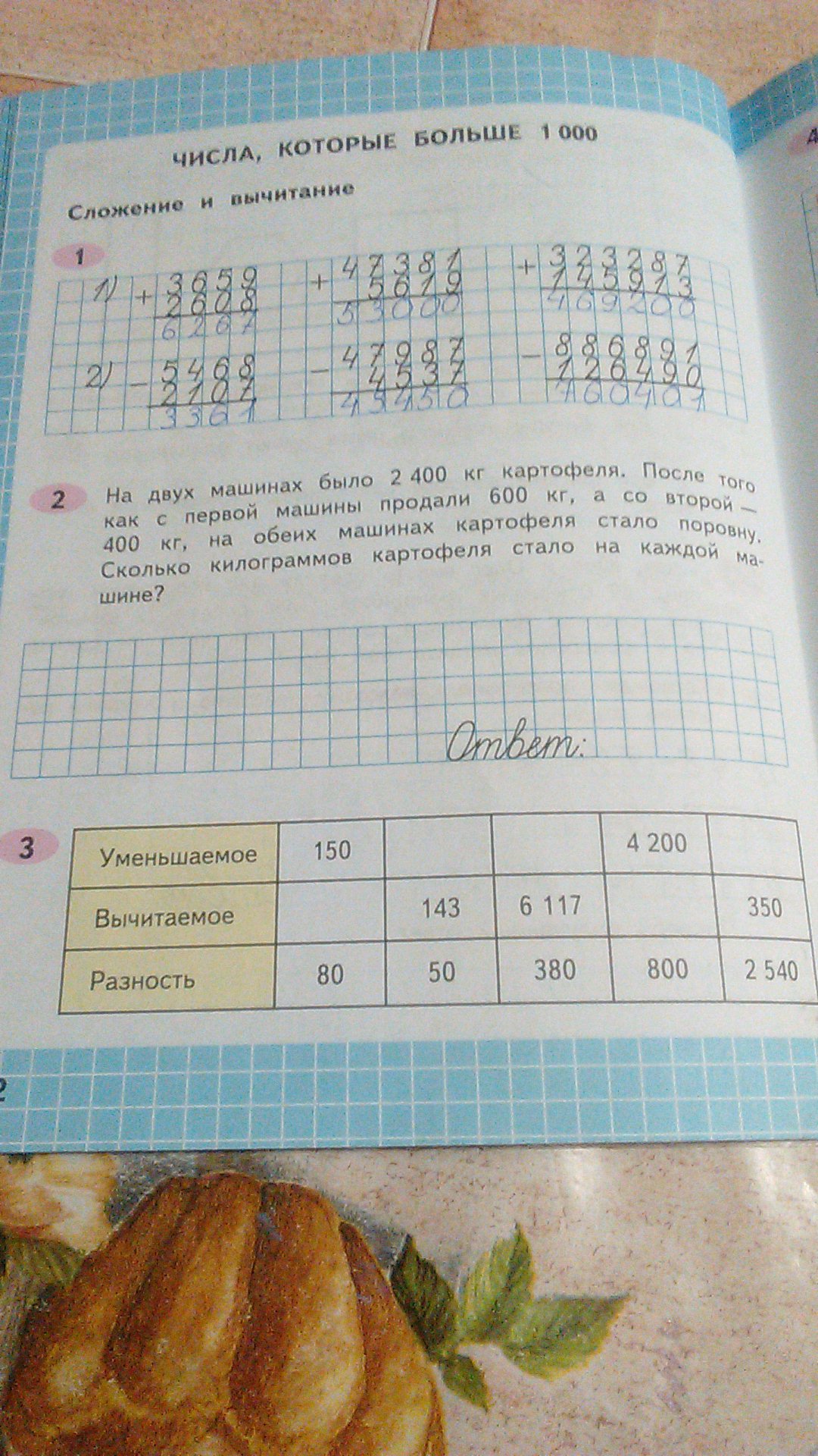 2)2400-1000=1400(кг)-картофеля стало на двух машинах
