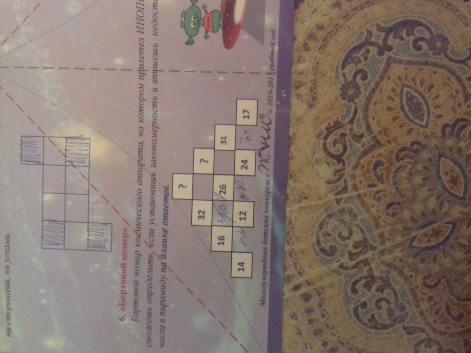 Как установить закономерность и вписать недостающие числа в пирамиду с числами 14 12 24 17 16 26 31 32 и 2 неизвестных числа
