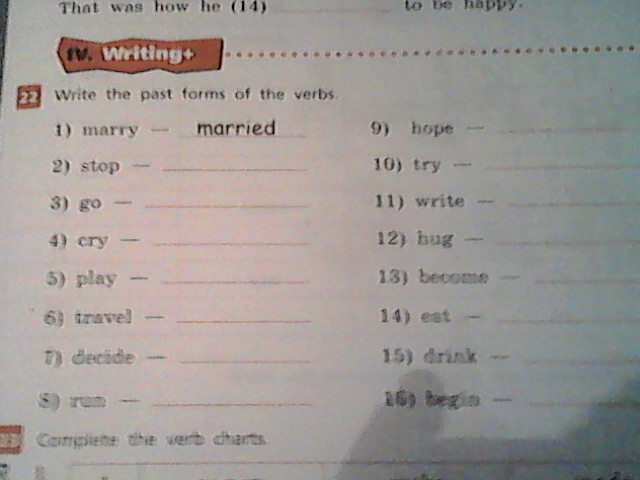 Вроде так. Marry-married,stop-stopped,go-went,cry-Cried,play played,Travel Traveled, дисайд decided,run ran hope Hopped,try tried write Wrote hug hag become Became eat aet drink drank