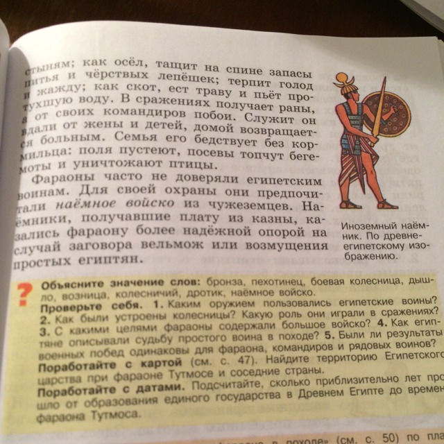 1 Египетские воины в древние времена использовали копья, щиты, мечи и луки. В инвентаре их были бумеранги и боевые топоры.