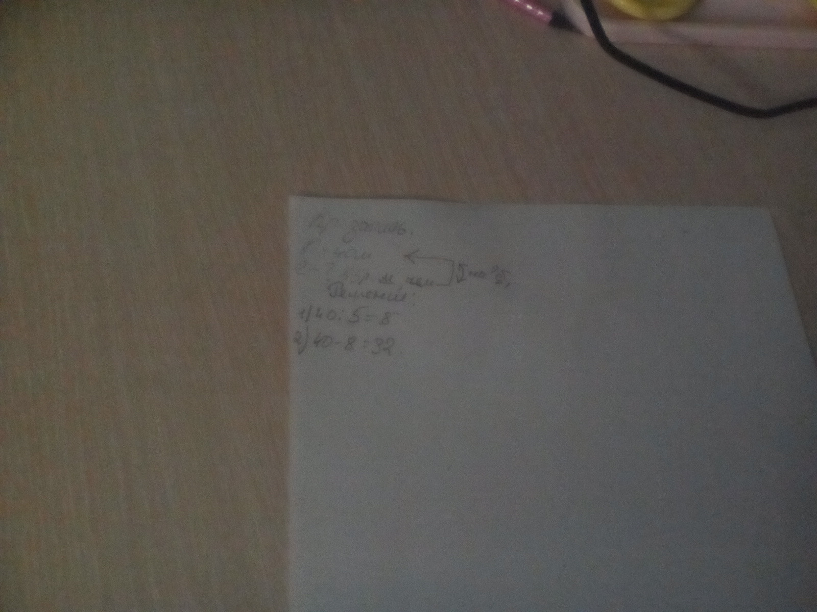 Коля пробежал 40м а сергей в 5 раз меньше метров. На сколько метров больше пробежал Коля чем Сергей?