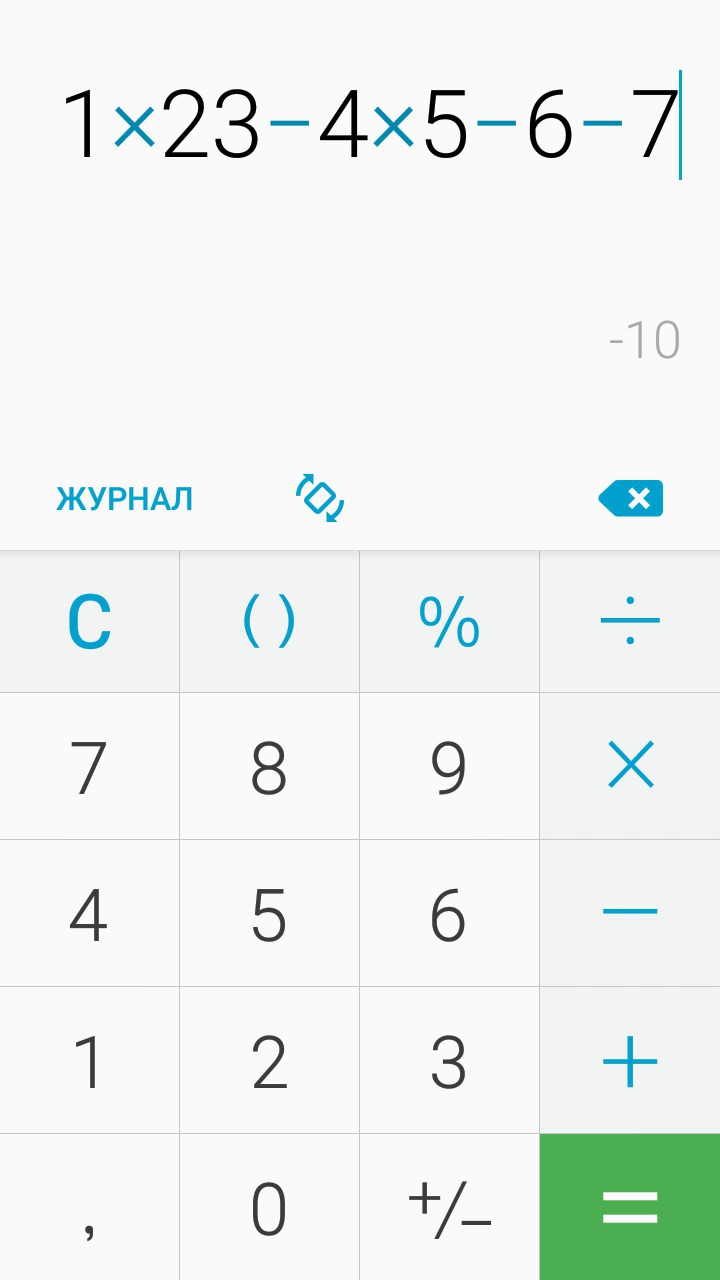 между некоторыми цифрами(1234567)поставте знаки действий и скобки(если это необходимо)так,что бы получилось 10