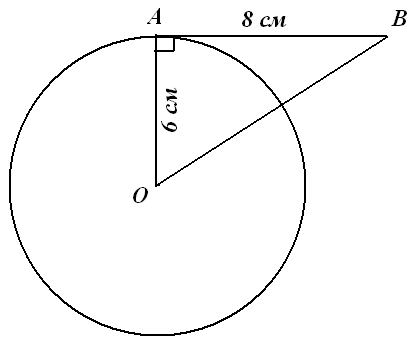 найдите периметр треугольника AOB если прямая AB касается в точке A окружности с центром O и радиусом 6 см а длина отрезка AB равна 8 см