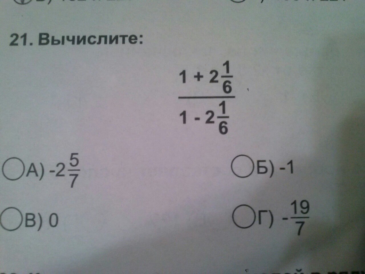 =(6/6+13/6)/(6/6-13/6)=(19/6)/(-7/6)=-19/7=-2_5/7; Ответ: а)