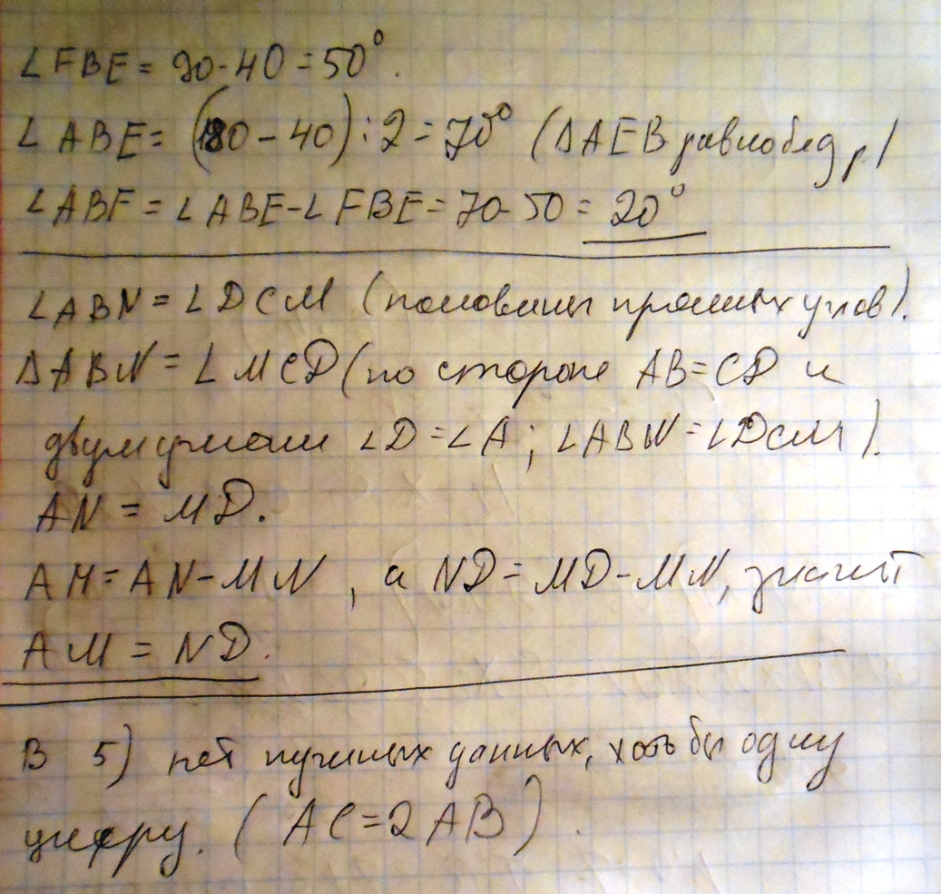 отрезок AM=отрезок AN - отрезок MN, т.е. от одинаковых отрезков отнимаем один и тот же отрезок