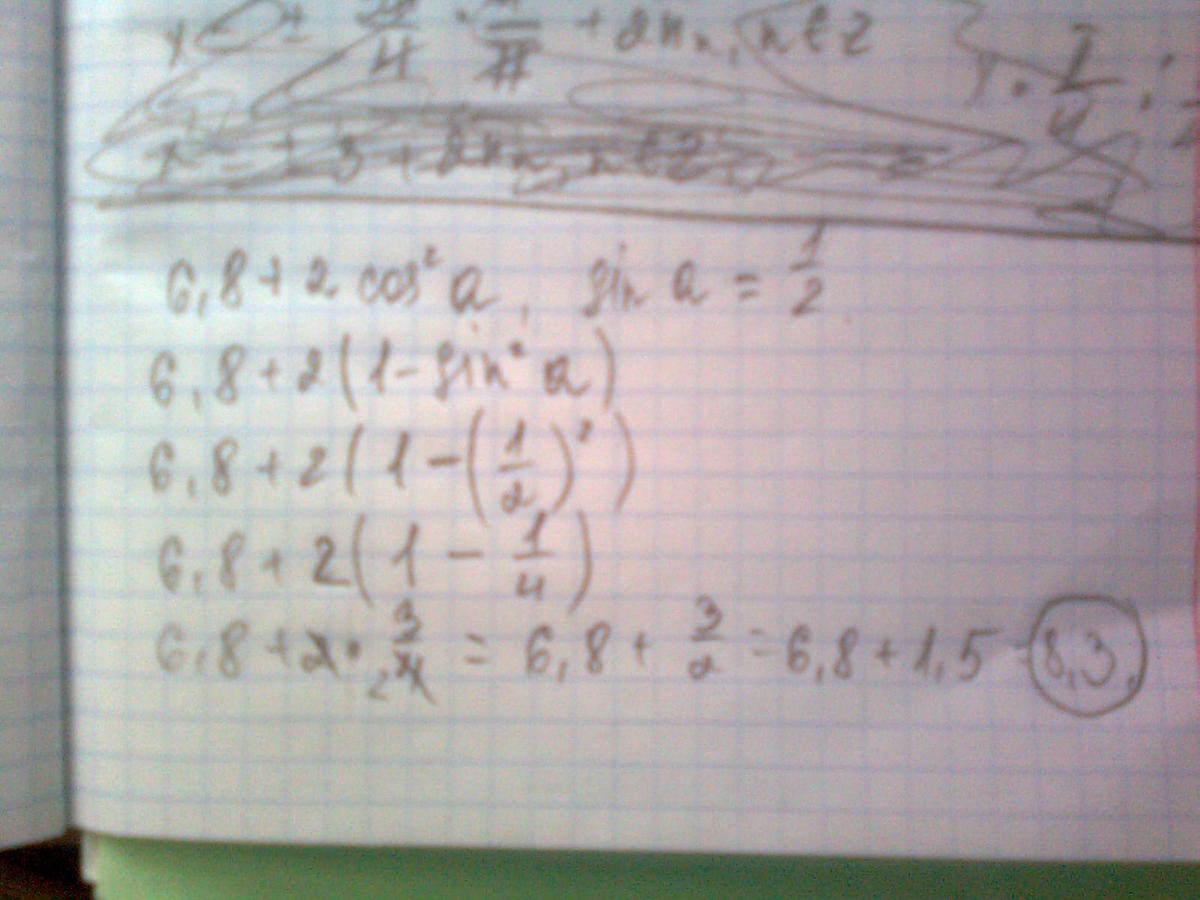 6.8+2-2sin^2a=6.8+2-2*1/4=8.3