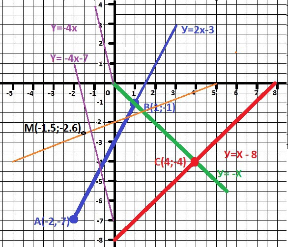Точка пересечения С(4;-4) - ОТВЕТ.