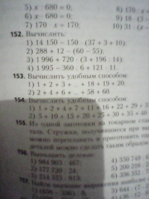 вычислить удобным способом 2) 2+4+6...+58+60 пожалуйста можно полным ответом и разборчего номер 153