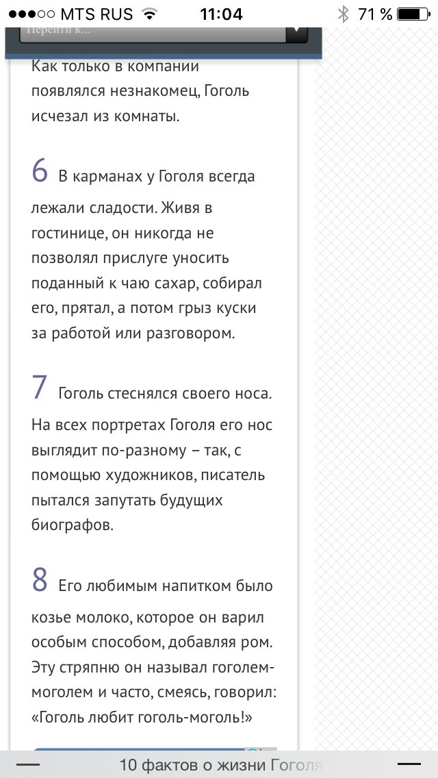 Он был крайне застенчив. Как только в компании появлялся незнакомец, Гоголь исчезал из комнаты.