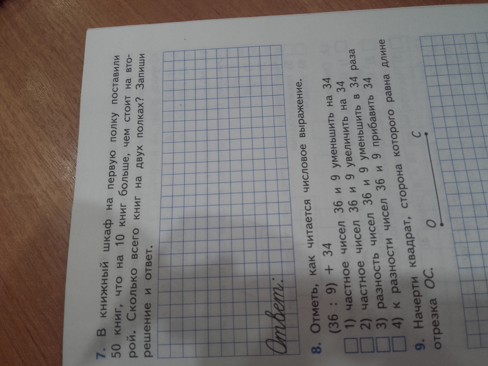 реши задачу В книжный шкаф на первую полку поставили 50 книг ,что на 10 книг больше, чем стоит на второй .Сколько всего книг на двух полках? Запиши решение и ответ