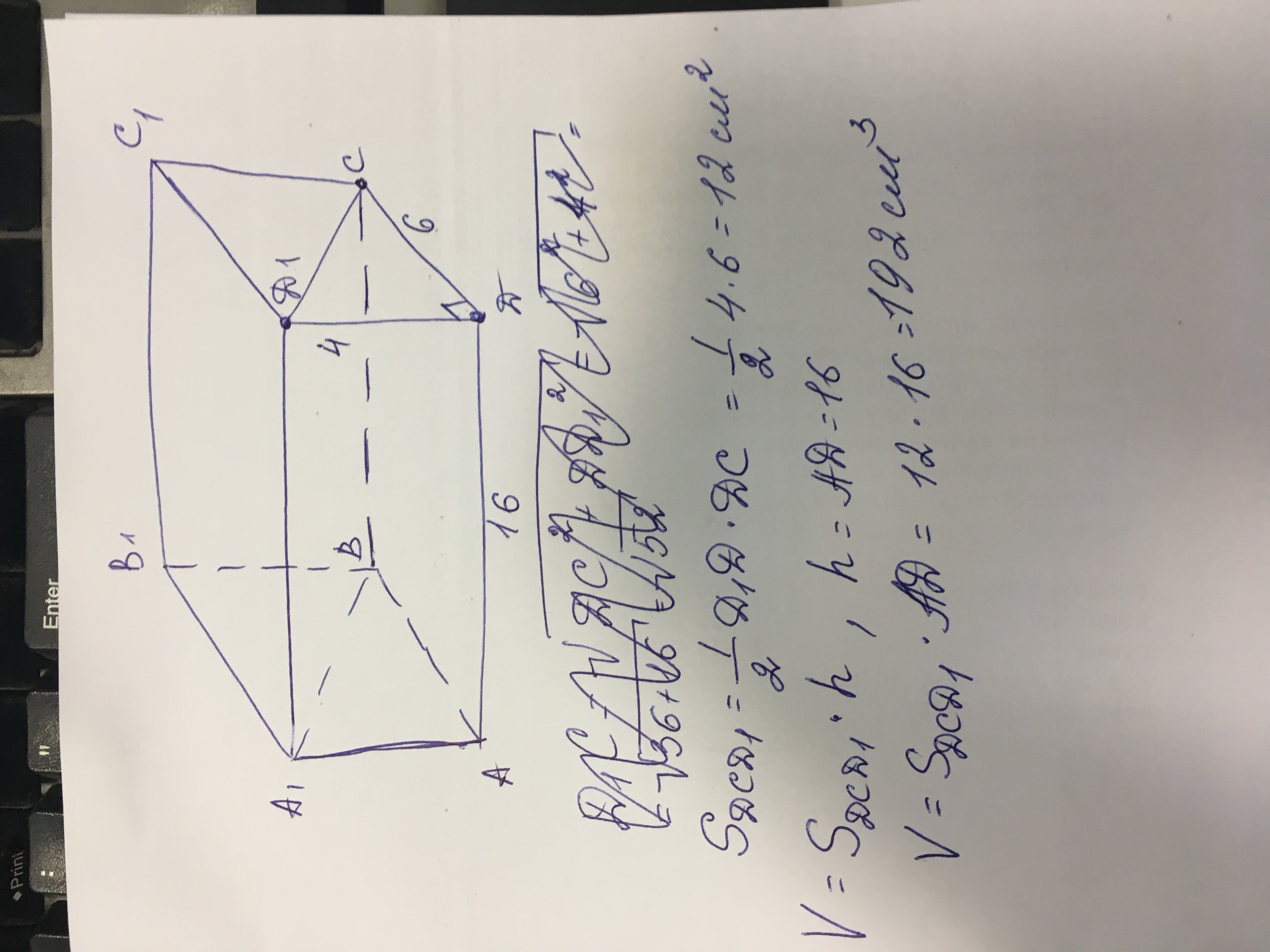 МНОГО БАЛЛОВ Измерения прямоугольного параллелепипела ABCDA1B1C1D1 равны 4 м, 6 м, 16 м. вычислить объем призмы CDD1BAA1.