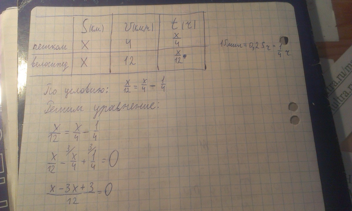 Сергей ходит от дома до стадиона пешком со скоростью 4 км/ч. Однажды он отправился из дома в обычное время, но поехал на велосипеде со скоростью 12 км/ч. На стадион он приехал на 15 мин раньше обычного. Чему равно расстояние от дома до стадиона.
