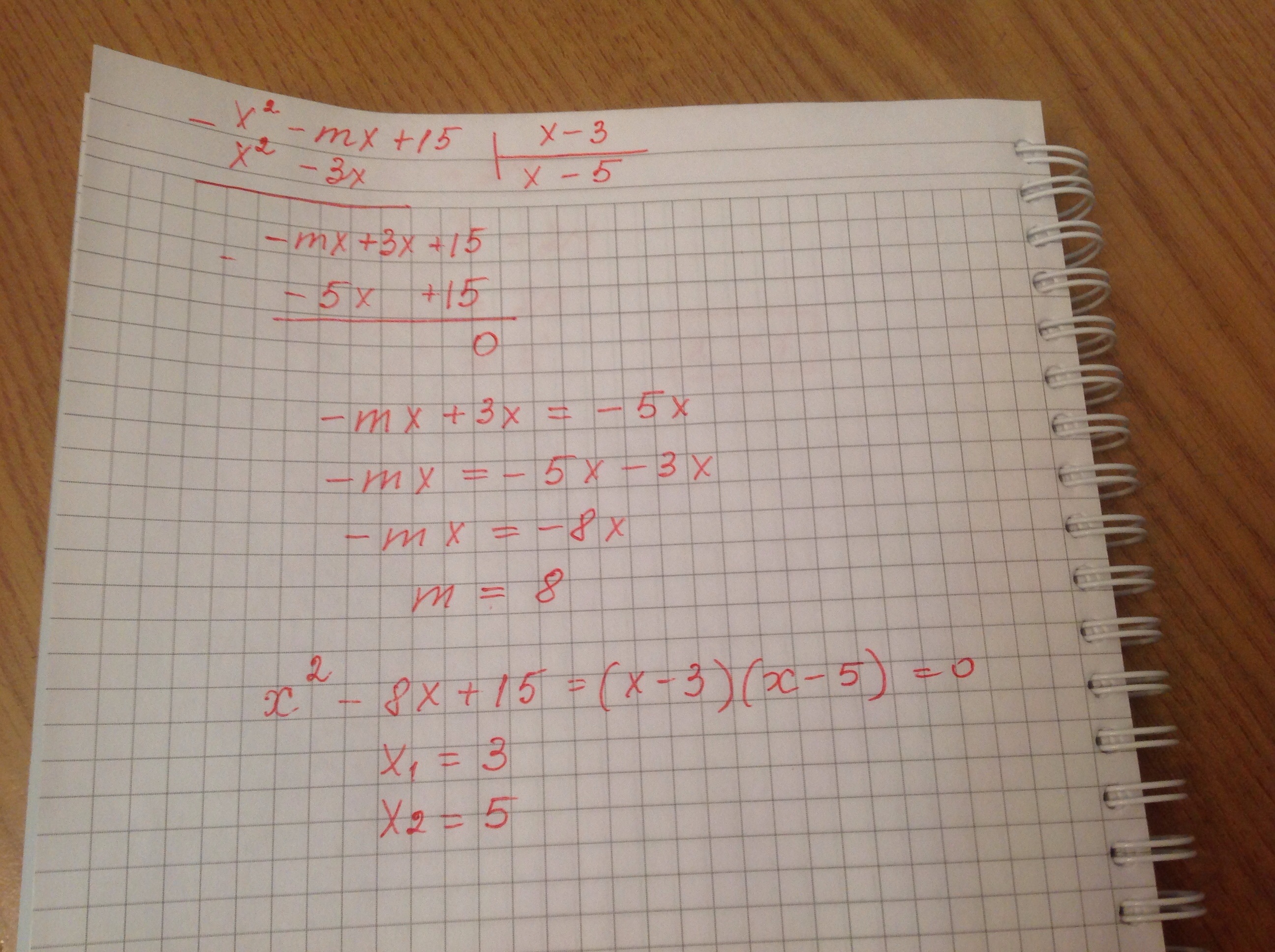 А-это многочлен, полученный после сокращения дроби (х^2-mx+15)÷(x-3). Найдите корень уравнения.