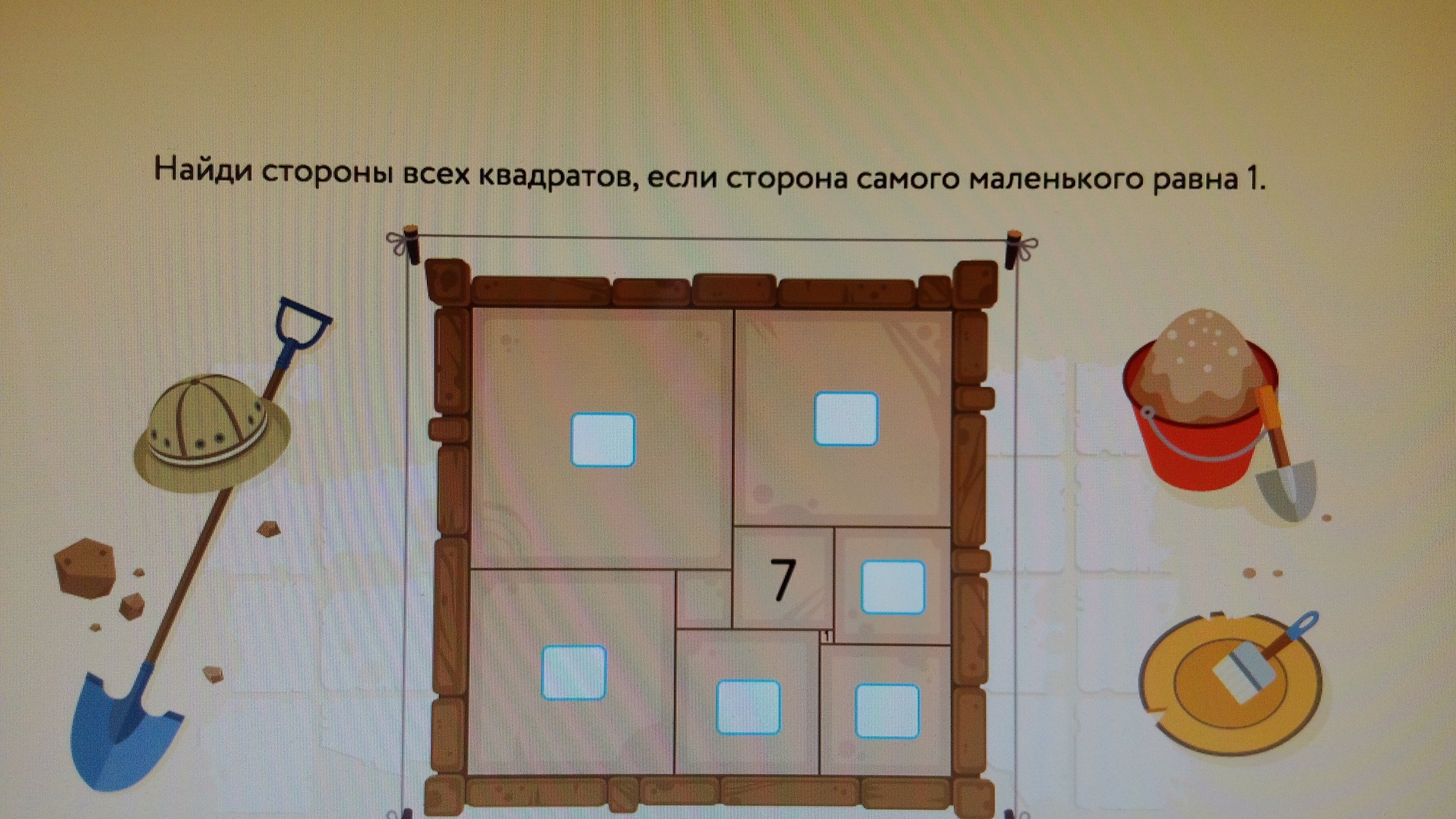 НАЙДИТЕ СТОРОНЫ ВСЕХ КВАДРАТОВ, ЕСЛИ СТОРОНА САМОГО МАЛЕНЬКОГО РАВНА 1!!!!!!!!!!!!!! ЕСТЬ КАРТИНКА!!!!!!!!!!!!!!!