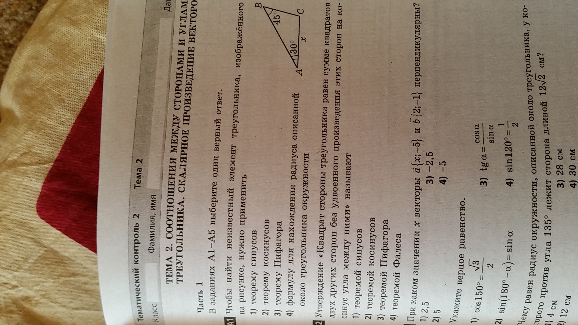 Чтобы найти неизвестный элемент треугольника, изображенное на рисунке, нужно применить: