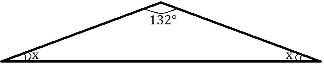 Углы при основании равнобедренного треугольника равны, при этом каждый из них меньше 90°, поэтому угол в 132° может быть только при вершине треугольника. Пусть х - величина угла основания, тогда