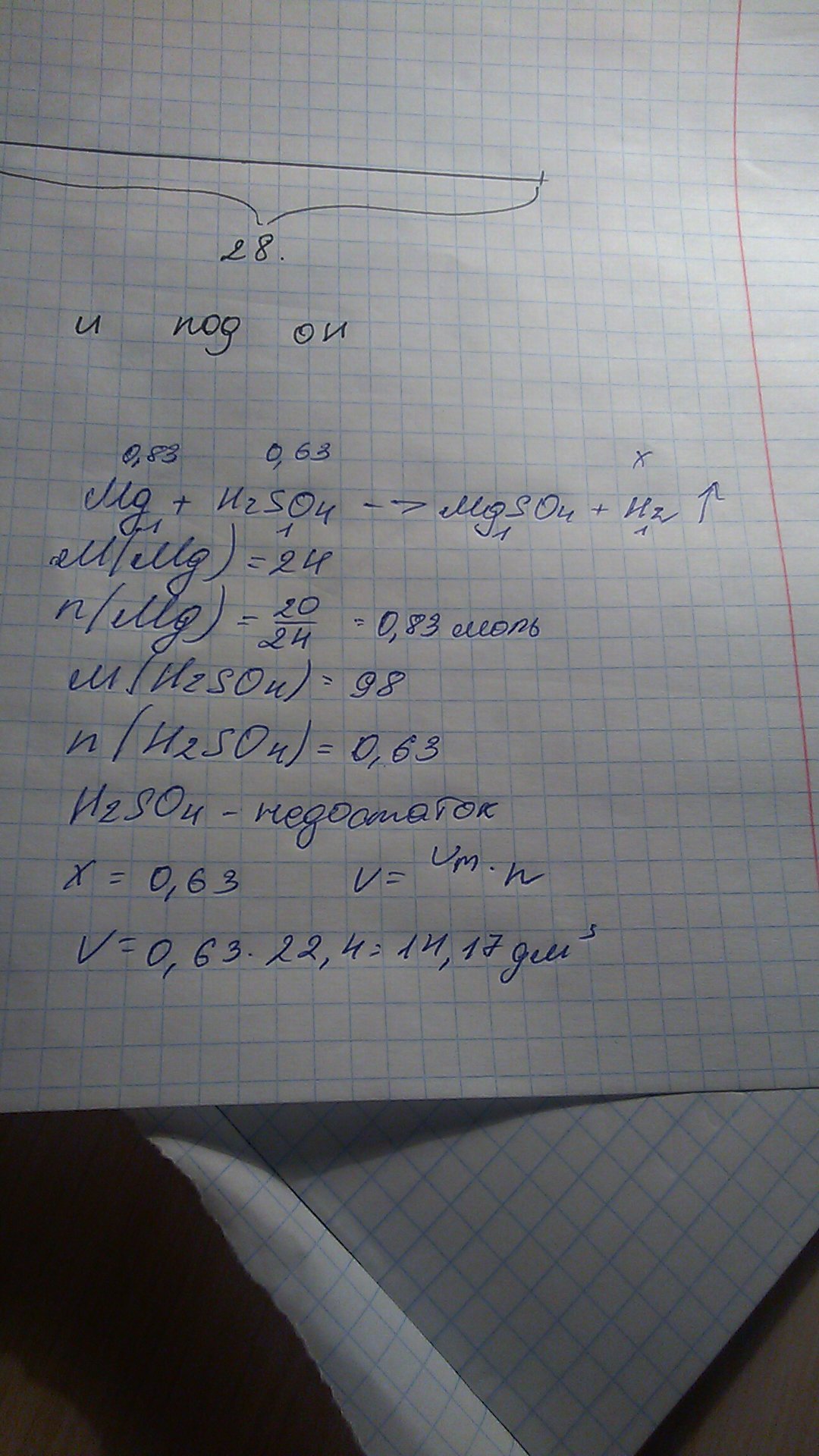 найти объем водорода выделившегося при взаимодействии 20 гр магния и 62 серной кислоты пипец как срочно помогите по братски