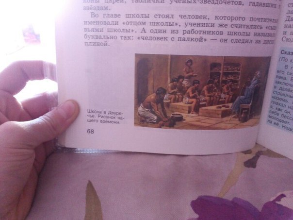 На картине изображено как учитель,а его называют отцом школы учил учеников фараона жрецов и писцов.Бедные люди не могли позволить отправить детей в школу.Могли только дети жрецов,фараонов и писцов.В школе детей готовили чтоб они стали писцами и жрецами.Учеников школы звали учениками школы.