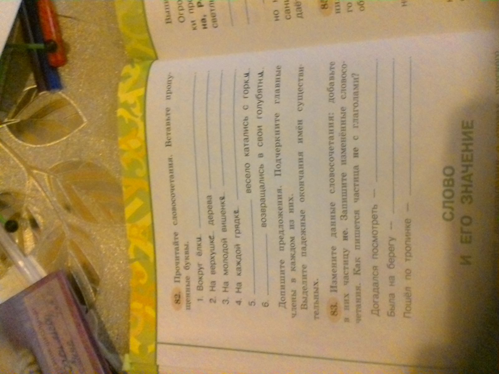 Прочитайте словосочетания вставьте пропущенные буквы Запишите предложения подчеркните главные члены в каждом из них Выделите падежные окончания имен существительных дам 7баллов