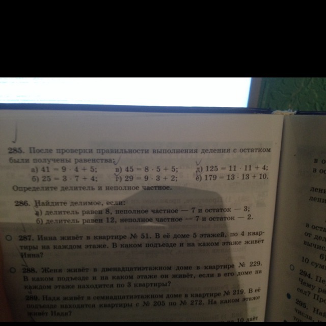 После проверки правильности выполнения деления с остатком были получены равенства#285