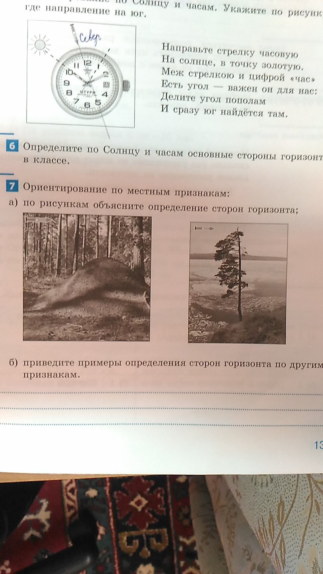 Задание 7. Ориентирование по местным признакам:
