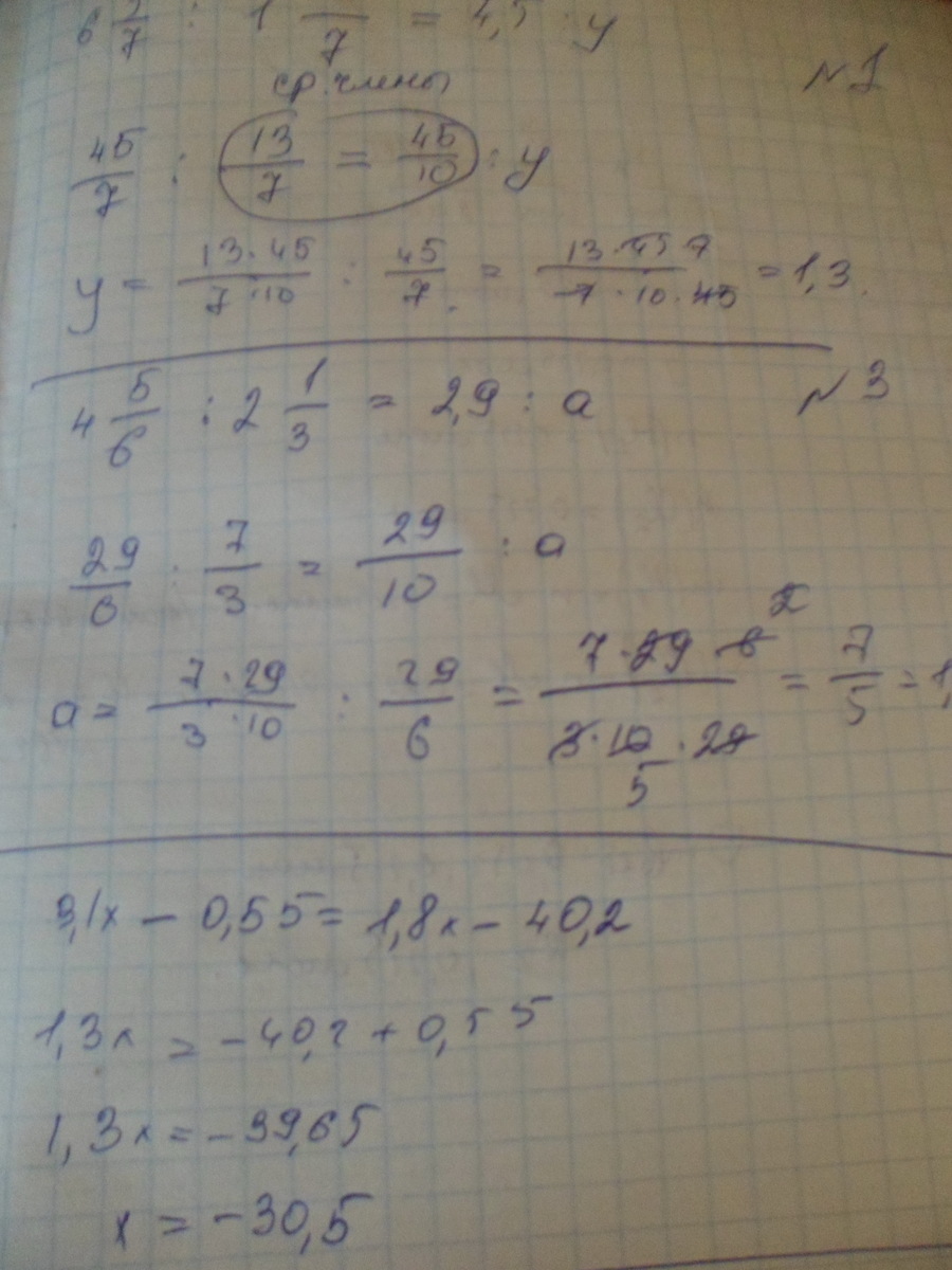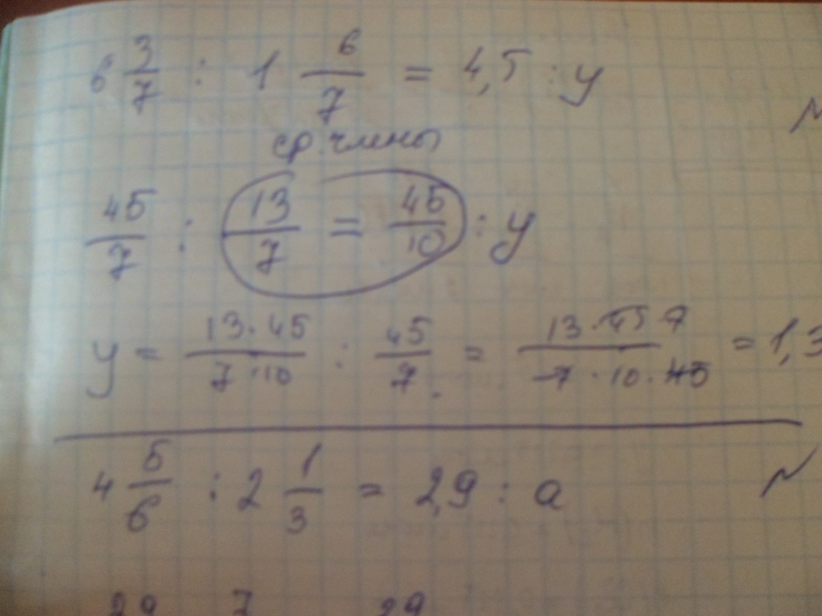 1) 6 3/7 : 1 6/7 = 4,5 : у