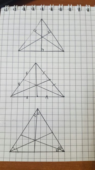 Начертить остроугольный , тупоугольный и прямоугольный треугольники и провести в каждом 3 медианы 3 высоты и 3 бесектрисы . Начертите пожалуйста
