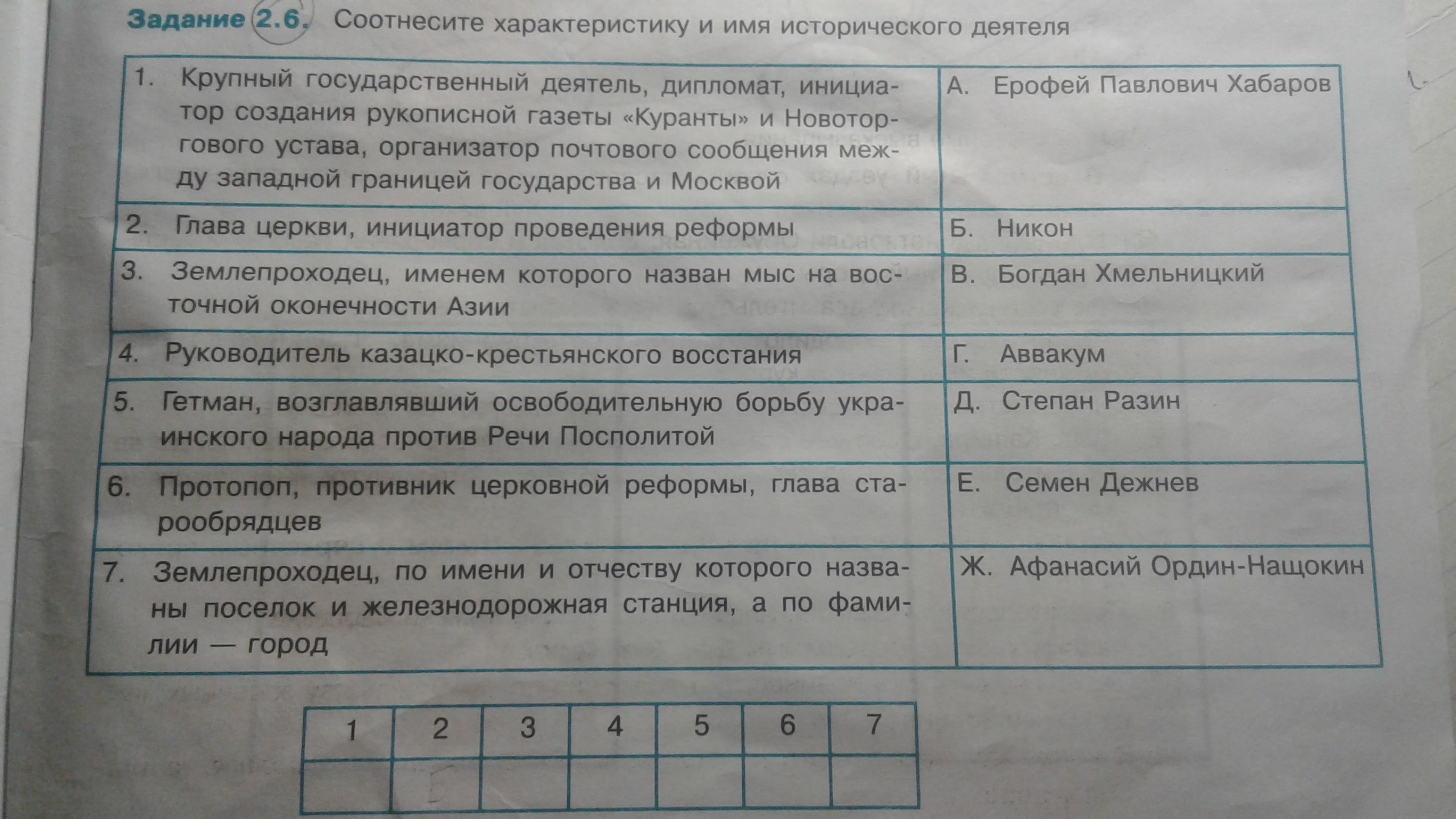 1-Ж; 2-Б; 3-Е; 4-Д; 5-В; 6-Г; 7-А.
