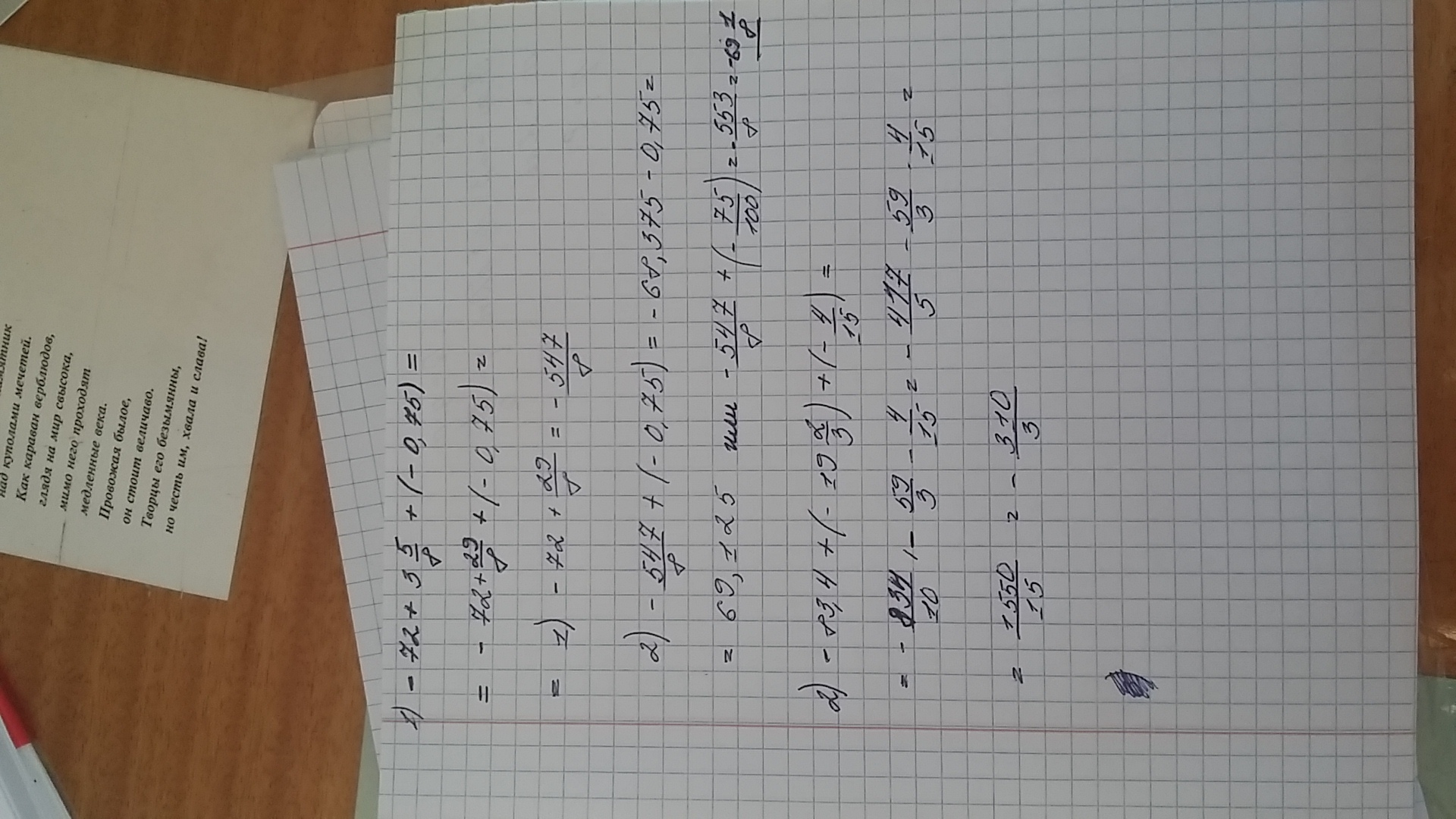 1 ) - 72 + 3*целых* 5/8 + ( - 0,75 )