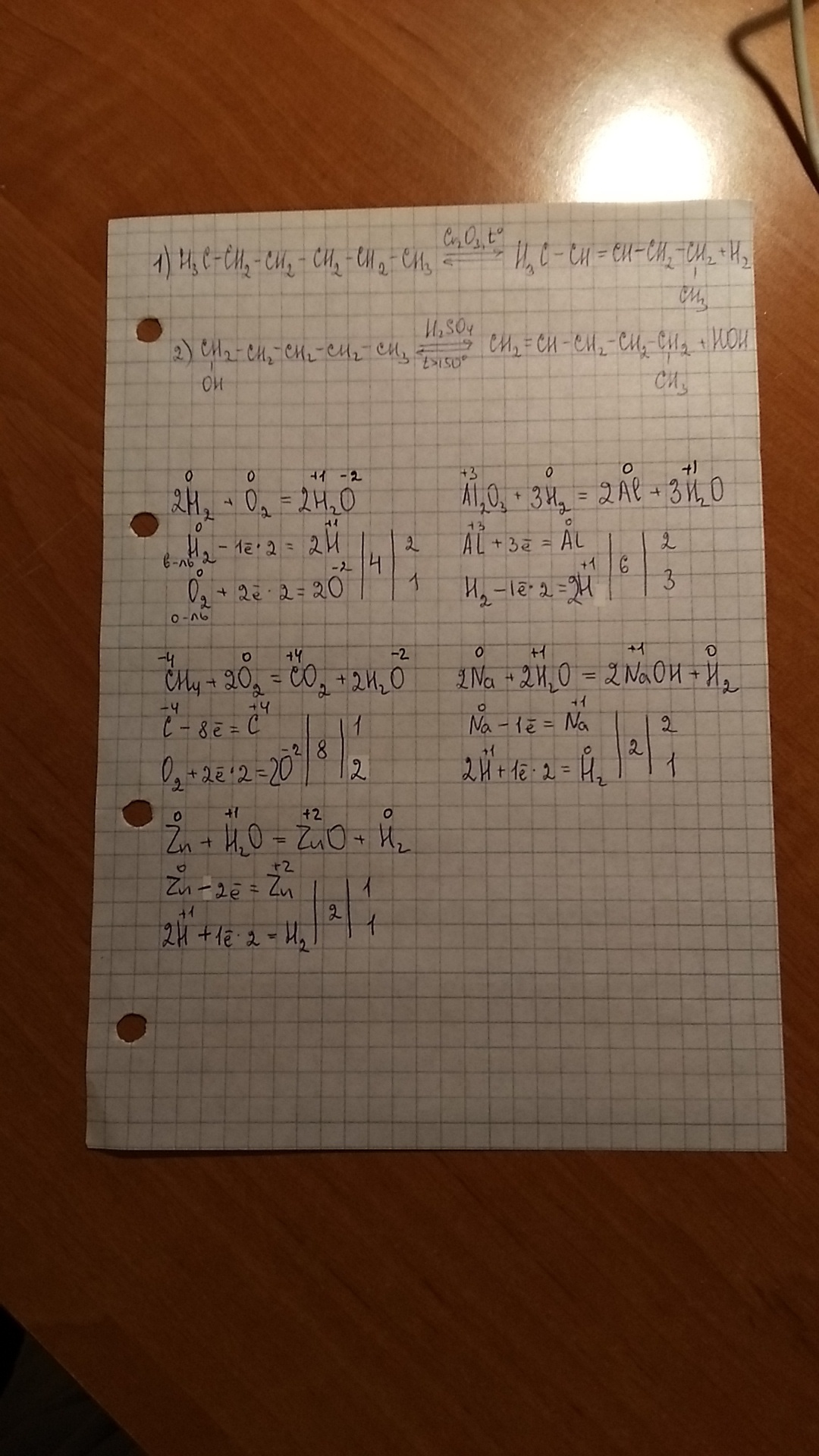 5. Zn+H2O=ZnO+H2
