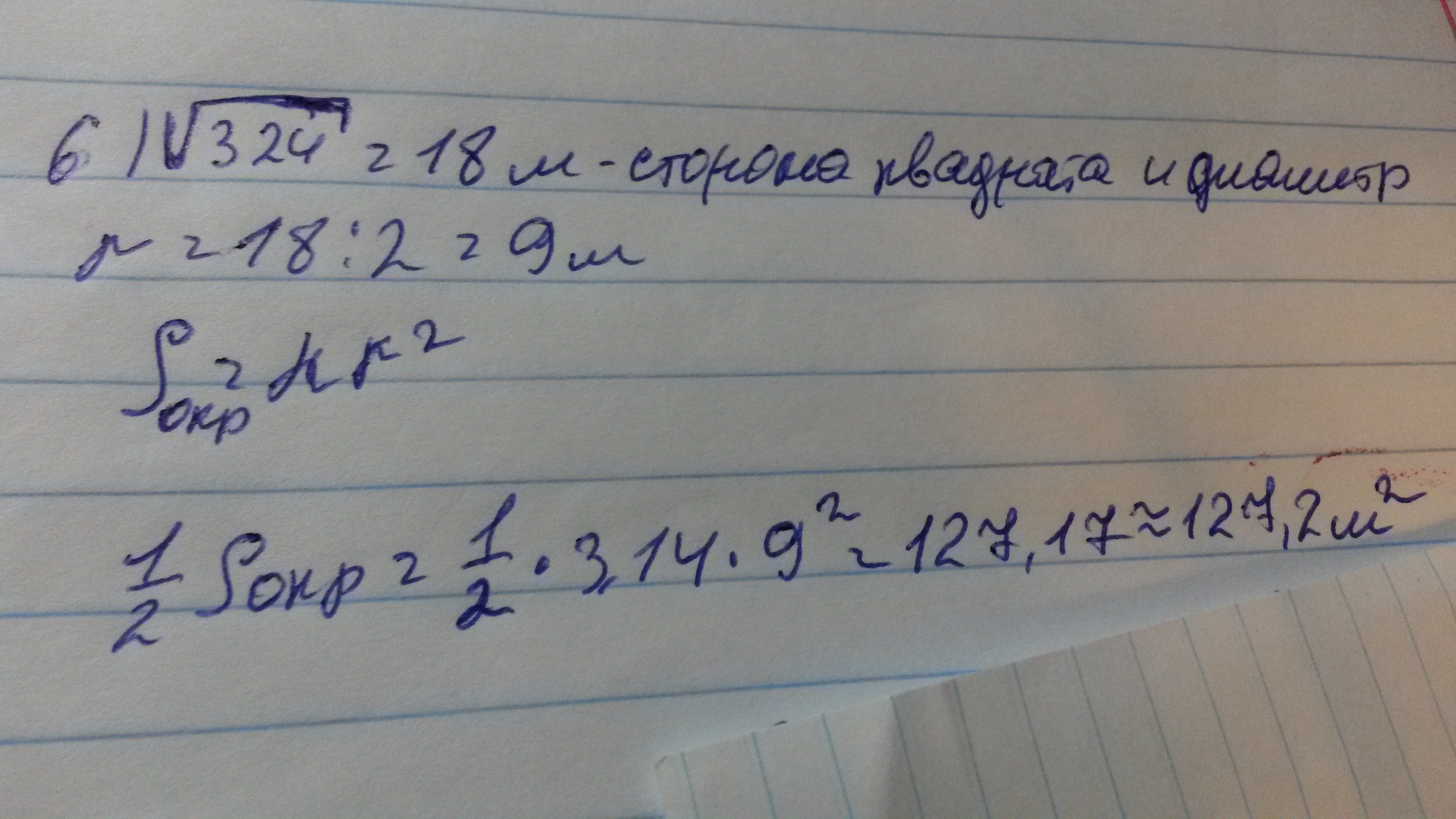 У меня все так же кроме 6) ты нашла длину полуокружности, а надо было ее площадь.