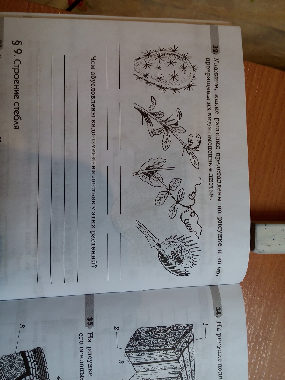 в этих растений листья видоизменились у кактуса и барбариса превратились в колючки тем самым испаряемой воды у гороха превратились в усики для поддержания растения