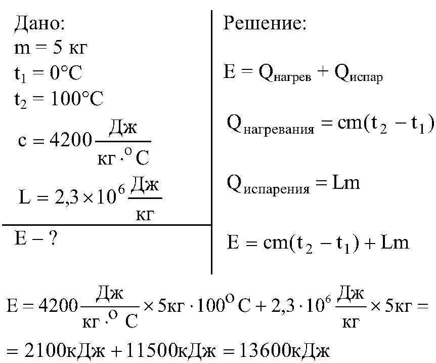 какое количество теплоты необходимо, чтобы 5 кг воды при 0 градусов довести до кипения и испарить её? решите задачу