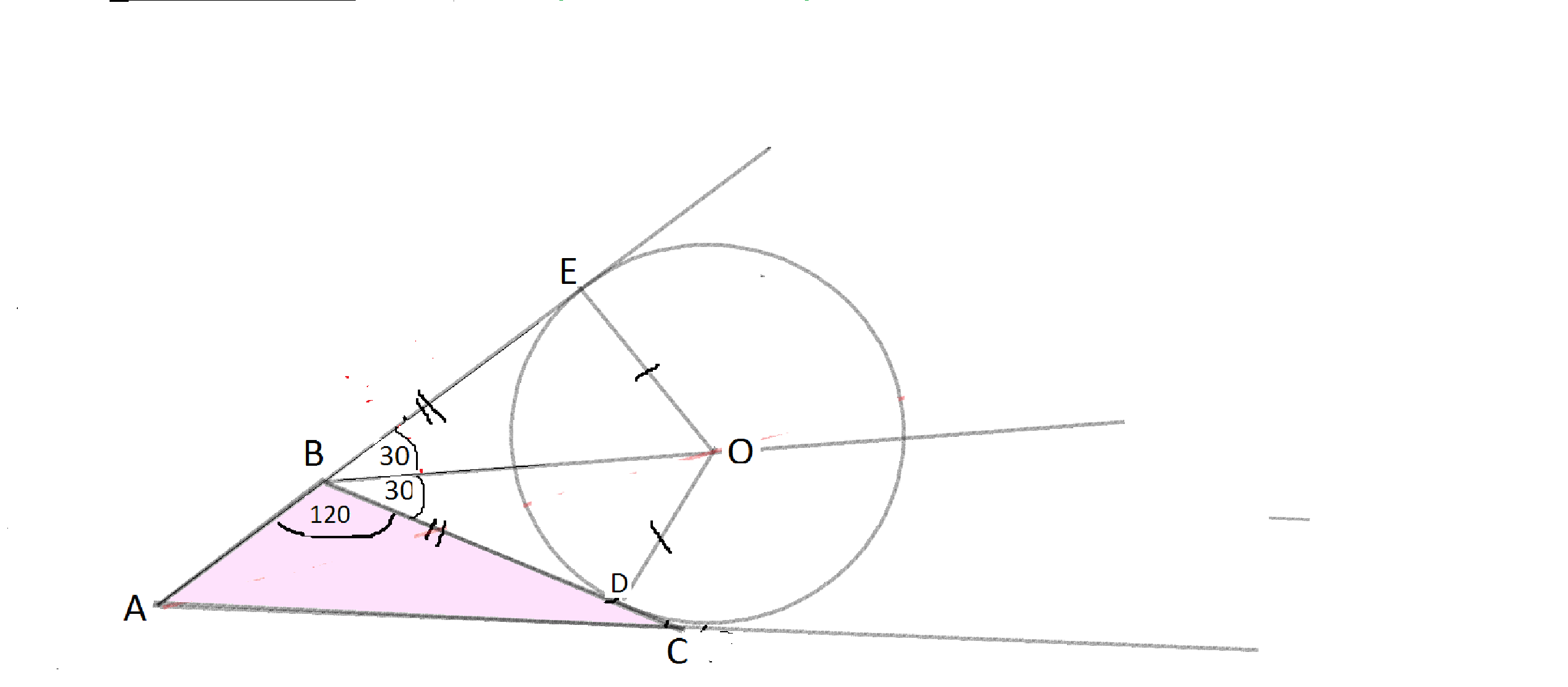 в треугольнике abc угол b равен 120 градусов, а длина стороны ab на 3 корень из 3 меньше полупериметра треугольника. найдите радиус окружности, касающейся стороны bc и продолжений сторон ab и ac