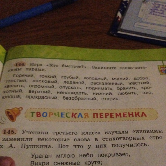 горячий-холодный,тонкий-толстый,грубый-ласковый,мягкий-жесткий,добро-зло,ледяной-раскаленный,хвалить-бранить,огромный-крохотный,опускать-поднимать,верхний-нижний,ненавидеть-любить,юноша-старик,прекрасный-безобразный.