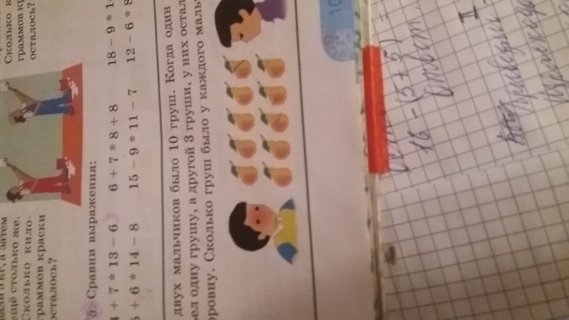 У одного-10 груш 1съел У второго - 10груш 3 съел всего- поровну ?шт.