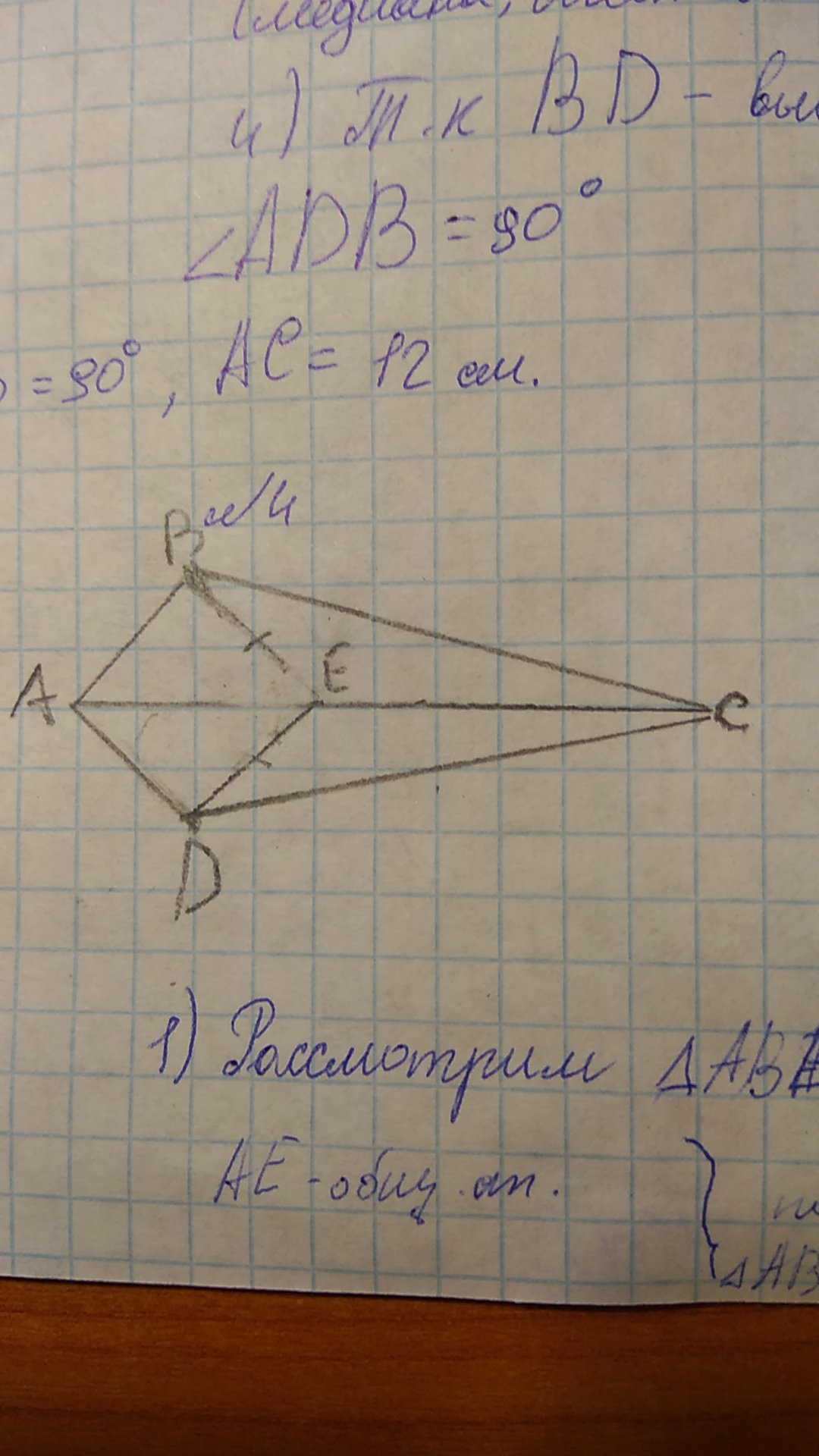 Насколько я понял, вы догадались, как доказать, что ВЕ=DE( из равенства треугольников ВЕС и DEC) Дальше не так уж и сложно: равенство двух сторон у нас есть. АЕ-общая. Рассмотрим углы АЕВ И АЕD: из условия нам дано равенство углов, смежных к данным( уг. АЕВ+ уг. ВЕС=уг. AED+ Уг. DEC= 180градусов). И далее доказываем равенство нужных треугольников по 2 сторонам и углу между ними.